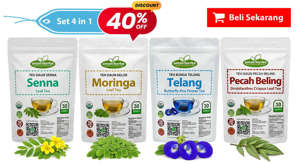 -RM50.00 OFF Kesihatan & Kecantikan Set 4 in 1 Teh Senna, Moringa, Telang, Pecah Beling 30 Uncang (Softpack) Amal Herbs RM70.00 RM120.00 (14) Set 3 in 1 Senna, Moringa, Telang, Tea Bag 30 Sachets (Softpack) 100% Daun Herba - Selamat, Bersih & Sihat Beli Sekarang